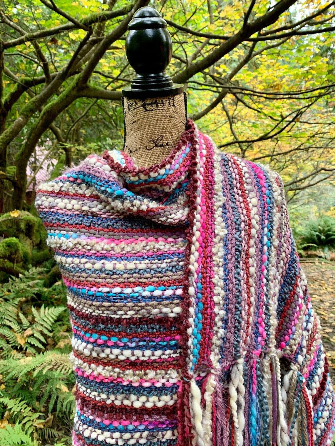"Cascade Meadows" handwoven shawl. Plain weave pattern.
